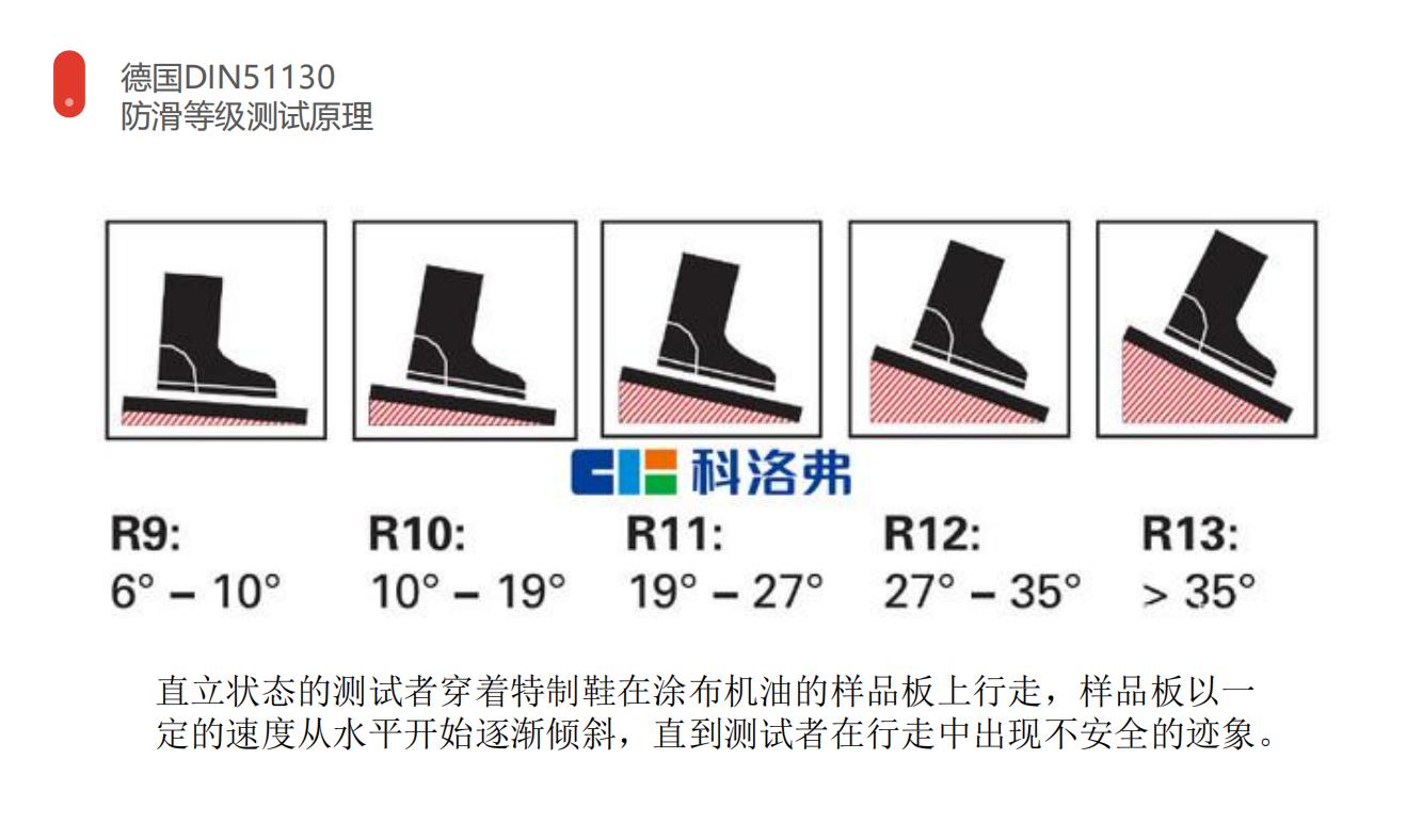 采用德國防滑標準生產,經德國油濕地面防滑標準DIN51130測試達R10防滑等級