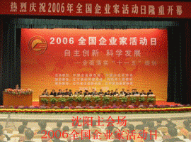 2006年全國企業家活動日于14日至15日在遼寧省沈陽市隆重舉行。會議圍繞“自主創新,科學發展——全面落實‘十一五’規劃”的主題,進一步動員和團結全國的企業家,從提高國家競爭力的高度思考自主創新戰略,并結合企業自身發展,把落實科學發展觀、提升自主創新能力放到更加突出的位置,積極鼓勵創新、支持創新、投身創新,切實發揮企業作為創新主體的重要作用,為國家自主創新能力的提高和經濟社會可持續發展,進而為全面實現建設小康社會宏偉目標作貢獻。