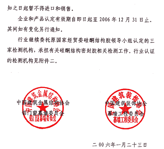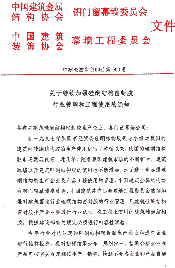 關于繼續加強硅酮結構密封膠行業管理和工程使用的通知